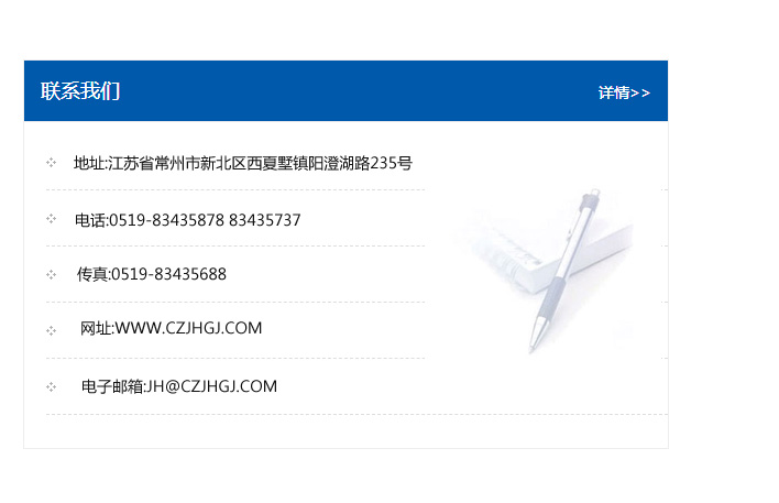 傳真:0519-83435688    郵編:213135    網址:WWW.czjhgj_com.tianyugjg.com    電子郵箱:JH@czjhgj_com.tianyugjg.com